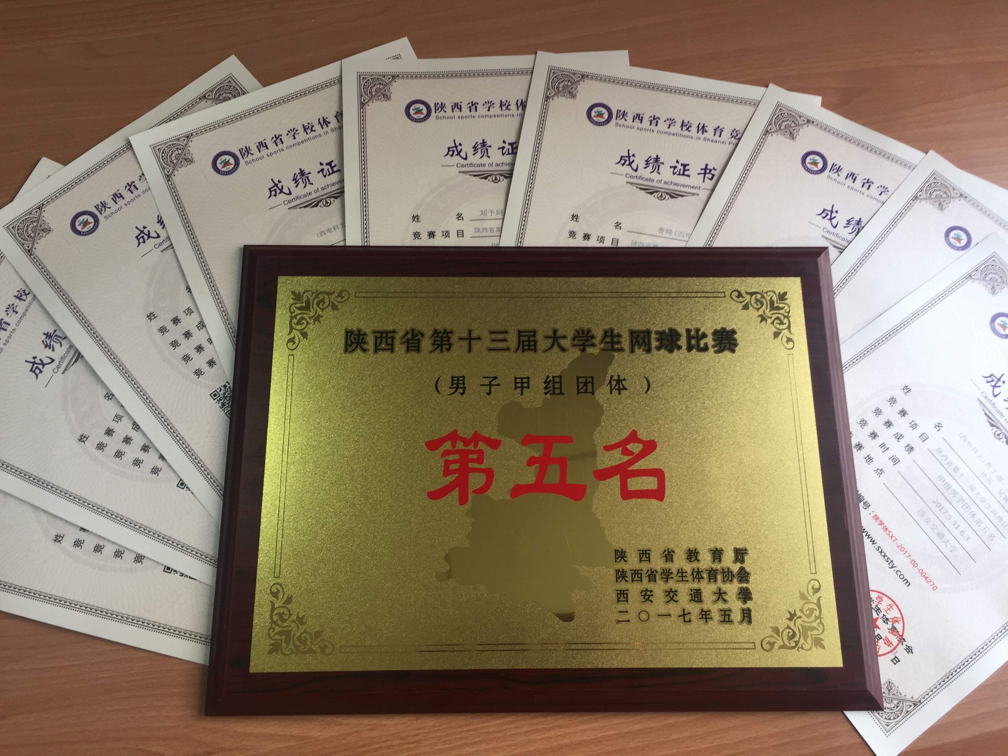 由陕西省教育厅主办,陕西省学生体育协会、西安交通大学承办的2017年陕西省第十三届大学生网球锦标赛暨第六届“校长杯”比赛于5月 31日至6月 3日在西安交通大学兴庆校区举行。本次比赛共有13所高校代表队的120多名运动员参加了包括男子团体、女子团体和男、女单、双打等多个单项的角逐,来自各高校的13名领导参加了“校长杯”的比赛。我校网球代表队选拔了九名队员参加了男子团体、女子团体及个人单双打比赛。