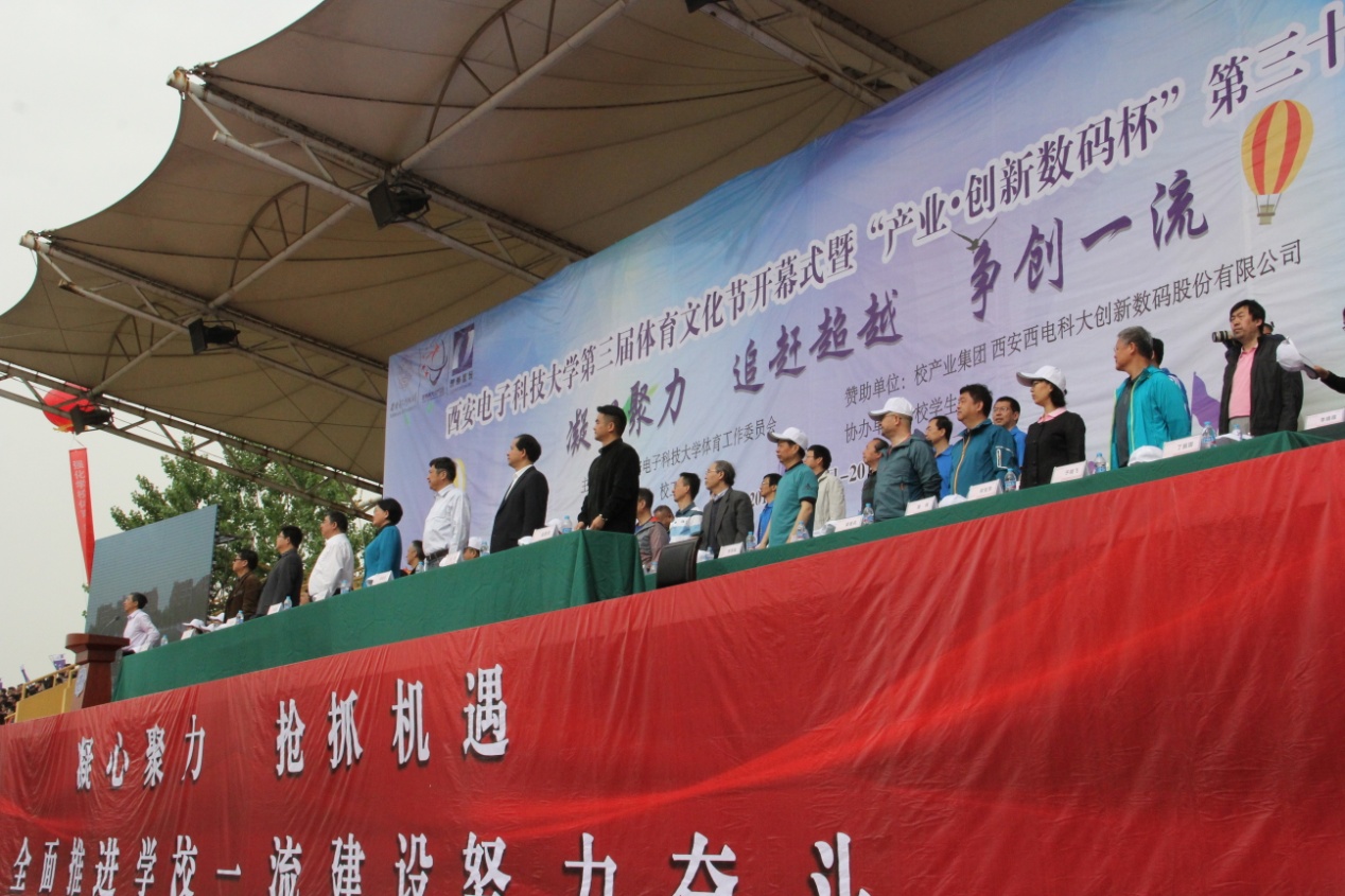 (通讯员 齐欣 张莹)4月19日上午,永利yl23411集团第三届体育文化节开幕式暨“产业·创新数码杯”2017年永利yl23411集团第三十九届运动会在西电南校区北操场隆重举行。校长郑晓静院士,副校长杨银堂,总会计师刘延平,校长助理姚波、张赟等出席开幕式。开幕式由副校长李建东主持。党委副书记、纪委书记蒋舜浩和赞助单位创新数码股份有限公司副总经理梁建康分别为本次活动致开幕辞和贺词。