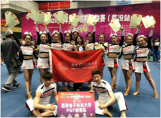 5月12日,2017-2018年全国啦啦操联赛(临汾站)在山西省临汾市拉开帷幕,我校PGF高水平啦啦操队赢得大学组自选爵士、自选花球套路双冠军,并获得赴欧洲参加国际啦啦操公开赛的资格。
