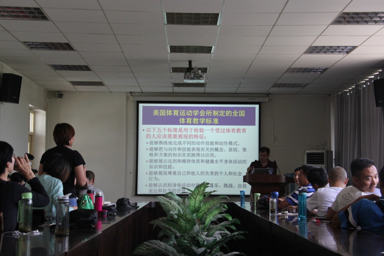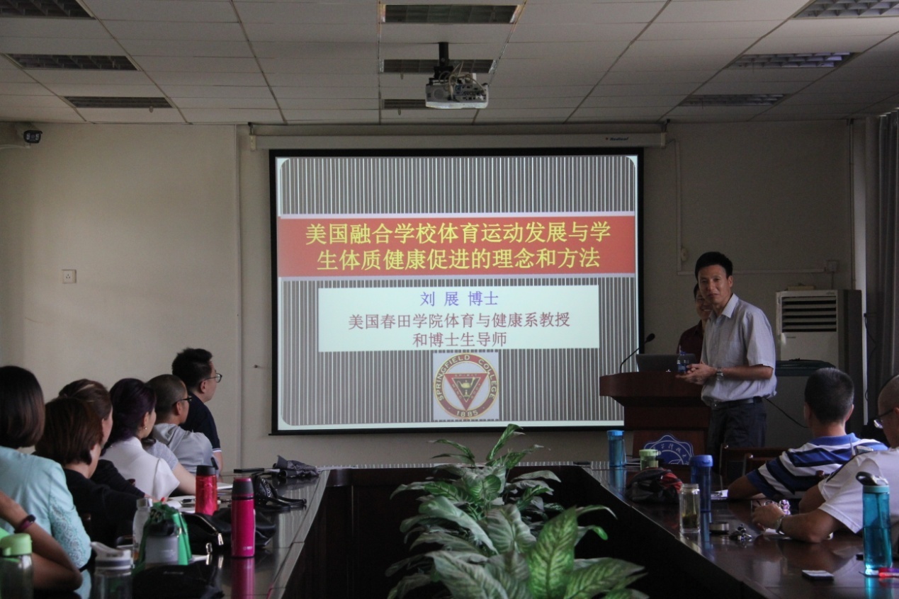 (通讯员 张莹)为促进我校教师教学能力提升,提高教师对美国大学体育运动发展模式和现状、美国学校学生体质健康现状以及美国学校学生体质健康提升的策略的充分认识,永利23411集团于少勇教授、教师教学发展中心联合邀请美国春田大学健康、体育和休闲学院体育健康系终身教授、博士生导师刘展博士,于6月16日在南校区永利23411集团会议室以“美国融合学校体育运动发展与学生体质健康促进的理念和方法”为题举行讲座。永利23411集团全体教师及学生代表共50余人参加了报告会,报告由永利23411集团部长于少勇主持。