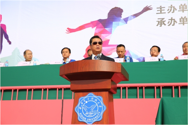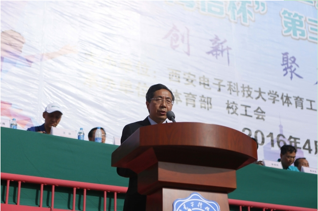 开幕式上,龙建成致辞。他说,西电有着优良的体育传统和锻炼氛围。学校一年一度的运动会不仅是全校规模最大、参与人数最多的一次盛会,更是传承和弘扬校园文化的重要载体。2016年,教育部对高校体育工作提出的总体要求是,继续强化体育课和课外锻炼。学校全面贯彻党的教育方针,高度重视体育工作,将体育指标纳入本科教育质量考评体系,同时在大学生毕业时对体质健康状况提出了明确要求。本届体育文化节将以“创新、聚力、腾飞”为主题,将各类校园体育竞赛贯穿全年,打造月月有赛事,周周有比赛的校园体育氛围。希望全体老师和同学通过参与各种形式的体育运动,进一步强化对体育学科和体育竞赛的认识,改变传统观念,真正发自内心的尊重体育、参与体育、珍爱健康。