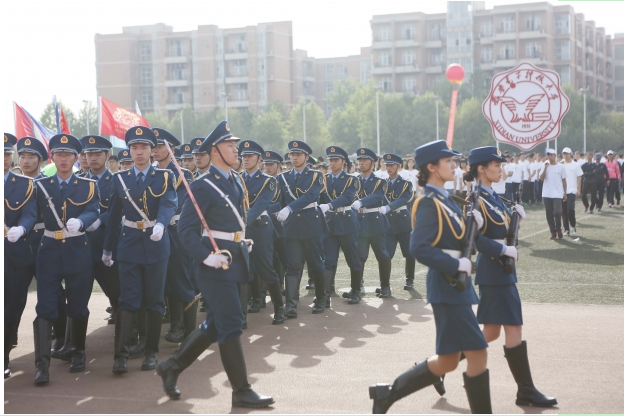 上午8点,踏着昂扬激越的运动员进行曲,组成国旗护卫队方阵的国防生们护卫着五星红旗走在队伍的最前面,裁判员队伍和参加比赛的16个学院、4个职能单位的运动员方阵依次入场。老师和学生们、喊着嘹亮的口号陆续通过主席台。各方阵充分利用多种服装、道具、队形和口号等形式,通过富有创意和个性的表演,充分展现着各自的精神风貌和学科特色,成为开幕式的一大亮点。人形机器人小E、飞旋的无人机以及航天模型等,把西电学生创新的思维、无穷的智慧、朝气蓬勃的精神面貌和对学校、学院的深切热爱展现得淋漓尽致。