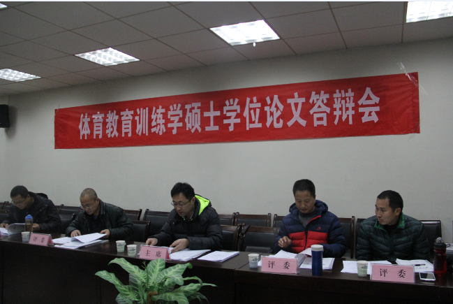 12月11日下午,2015届体育教育训练学硕士学位论文答辩会在南校区游泳馆二楼会议室进行。2013级体育教育训练学硕士研究生李玉林、战鹏两名学生作论文报告,经答辩会成员一致同意,顺利取得硕士学位。陕西师范大学体育学院院长史兵教授担任本次答辩主席,永利23411集团白光斌副教授、苏振阳副教授、张超副教授、高鹏飞副教授担任答辩委员会委员,研究生导师于少勇教授列席答辩会。