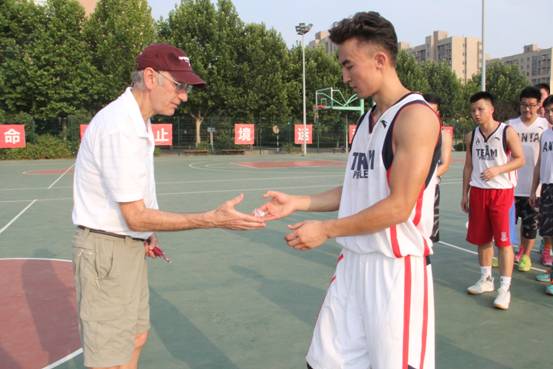 我校男子篮球队由来自各学院的普通大学生组成,2016年作为陕西省冠军队代表陕西参加了首届CUBA全国大学生篮球联赛阳光组的比赛,是一支竞技水平突出、团结进取、追求卓越的运动队。2017年7月3日下午,Dr.Wall和周鹏博士参观了我校南校区体育馆后在南校区篮球场给我校篮球队进行了一场丰富有趣的训练课,即使当天高温酷暑,也丝毫没有影响他们的工作。如我们所知,美国篮球领先于世界,春田学院更是美国篮球的发源地,所以在这堂篮球课上,每个人都集中精力不敢有一丝懈怠。这节课主要是对篮球队训练模式和个人意识的训练。Dr.Wall和周鹏博士先是将几种传球方式一一讲解、示范,细致到了每一个动作。随后Dr.Wall将队伍中的后卫与中锋分开教学,因材施教,后卫练习传球的方式方法,中锋练习内线脚步,独特的教学方法和训练技巧让每位队员都有了新的体会,也认识到了自身的不足,即使是最基本的传球训练仍有很多可以提高的地方。最后一个单元是趣味练习,看似轻松有趣实则是对团队意识和抗压的锻炼,具体方式为每个人依次进行罚球,进则休息,不进则全队半场折返跑一次。前两个队员顺利投进,接下来几个队员无一命中,就连平时罚球命中率最高的队员也失误了好几次,整个训练下来,有人足足跑了二十多次。赛场上罚球是否命中有时意味着一场比赛的胜负,这时比的就是抗压能力,心理压力会影响正常发挥,若在平时多加训练,可大大提高队员们在赛场上的发挥。两小时的训练结束后,Dr.Wall和周鹏博士给队员们赠予了来自春田大学的小礼品,期望他们日后能够在比赛中取得优异的成绩。