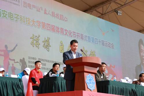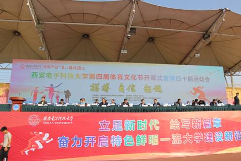 校党委书记郑晓静院士因重要公务出差在外,开幕式上她通过组委会向广大师生问好,预祝活动取得圆满成功,运动员取得优异成绩。校长杨宗凯、党委副书记杨银堂、总会计师谢军占、副校长李建东、副校长蒋舜浩、党委副书记、纪委书记任应坤、副校长高新波出席开幕式。副校长石光明和赞助单位立人科技股份有限公司副总经理蒋建禧,分别为本次活动致开幕词和贺词,陕西省体育局副局长董利也应邀出席了开幕式。
