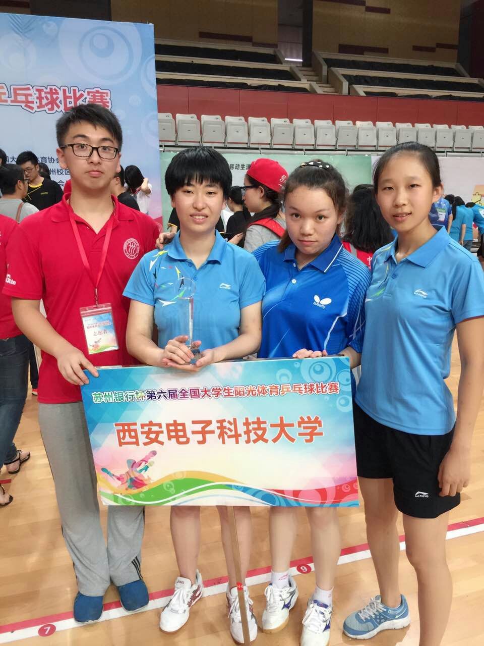 学校开展本科教学质量提升计划以来,永利23411集团一直致力于体育教学综合改革,在强化体育课教学的基础上,大力推行课内外一体化教学,而乒乓球课程在大学生体育选项课中参与人数众多,深受广大学生喜爱,一直是体育教学的重点建设课程。我校乒乓球代表队在此次全国赛事中取得的优异成绩,不但展现了西电学子的奋勇拼搏、力争第一的精神,也充分说明了我校大学生体育运动的蓬勃发展,标志着我校大学生的乒乓球竞技水平迈上了全新的台阶。