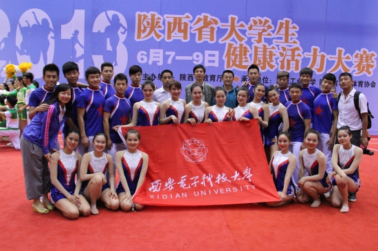西电新闻网讯 近日,2013年陕西省大学生健康活力大赛在西北工业大学长安校区翱翔体育馆举行,来自全省46所高校的1146名运动员参加。永利yl23411集团啦啦操队取得团体总分第二名,多个项目第一名的好成绩。