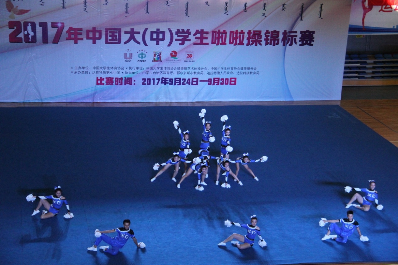 2017年全国大学生啦啦操锦标赛于9月24-30日在美丽的内蒙古鄂尔多斯市达拉特旗举行。本次锦标赛由中国大学生体育协会、中国中学生体育协会主办,共有68所院校的1185名运动员参加并展开了激烈的角逐。