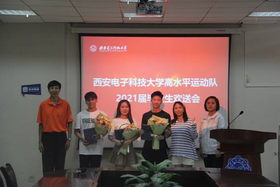 最后,于少勇先后为3名啦啦操队毕业生和3名游泳队毕业生送上了毕业礼物和鲜花,并邀请两位教练共同合影留念。欢送会接近尾声,主持人孔东感情充沛地作了结束寄语,再次祝愿所有高水平运动员们前程似锦、大展宏图,欢送会正式落下帷幕。