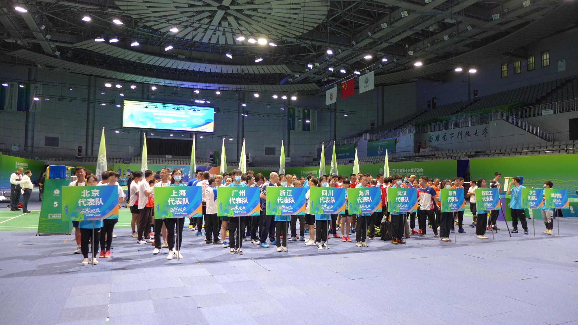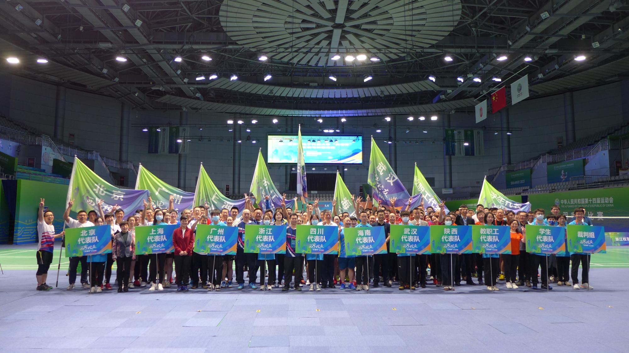 本次比赛以混合团体赛的形式开展,赛程共分为三个阶段。第一阶段各地校友代表队经过抽签分组进行小组循环赛,第二阶段进行排名循环赛,同时进行教职工代表队和学生代表队的师生友谊赛,第三阶段是校友代表队与教职工、学生代表队进行的师生友谊赛。本届邀请赛共有北京、上海、广州、浙江、武汉、四川、海南、陕西一二队、教职工、学生代表队等11支队伍到场参赛。由于疫情原因福建代表队未能来到现场,各地校友也为他们送上了中秋的祝福,现场还为未能到场的广大校友进行了线上直播。
