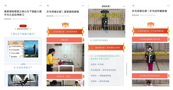 一经动员,永利23411集团的老师们迅速行动起来,发挥专业特长,创造条件录制制作视频。永利23411集团杨国标老师率先行动,利用家中随手可见的重物为大家示范了在家就能进行的,针对背部、大臂后侧、大臂前侧等部位的健身健美塑形练习。篮球俱乐部江茹莉老师提供了开合跳、俯卧撑等基本体能练习视频。乒乓球俱乐部詹歌老师在家中垒起花式乒乓球桌,为大家演示了如何在家中进行花式乒乓练习,让大家在巩固课堂上学到的乒乓球技术基础上同时感受到趣味性。詹老师还提供了对墙击球和花式对打两种类型的视频,供不同条件的师生练习。张超老师则为师生们提供了近期录制的《核心与下肢能力提升》和《久坐拉伸练习》两段视频,特别针对疫情期大家久坐的困扰,贴心地指导大家如何进行科学拉伸,如何练习到自己的核心与下肢力量。魏荣老师在家中阳台录制了7段乒乓动作健身操视频,将正手攻球、反手拨球、左拨右攻等徒手动作整合成了健身操。
