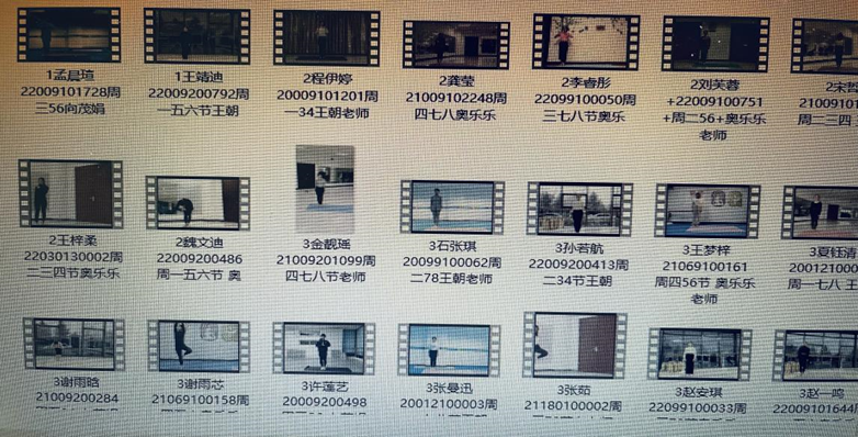11月26日-12月8日进行赛前技术指导以及线上参赛视频录制的培训。经过三次集中培训,协助队员顺利完成健身瑜伽的视频拍摄。本次比赛共有18个学院共计700余人参赛。经过第一轮淘汰赛,有40余人进入预赛。12月9日接收、归整参赛视频,12月10日进行线上评比,决赛评比由裁判长王朝老师主持,体式质量组王朝、向茂娟、奥乐乐,展示水平组夏淑云、郭青青、苏睿,记录组任大明负责具体评分工作。