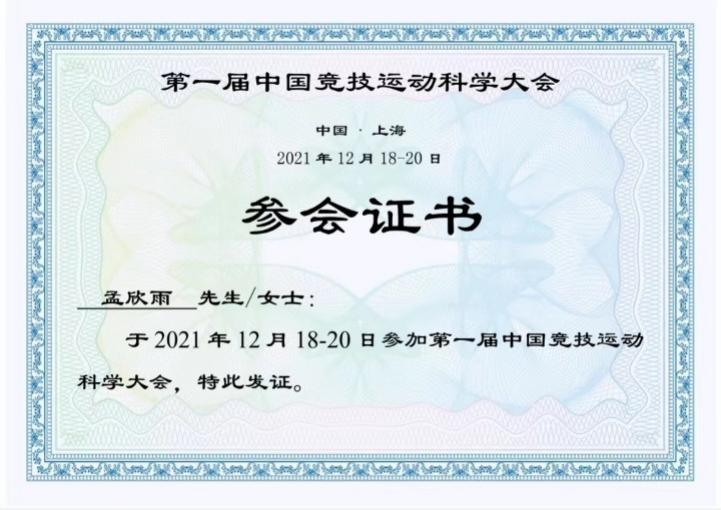 孟欣雨在取得夺目的竞赛成绩之外,依然坚守研究生本职,认真钻研专业知识,刻苦学习,各门专业课成绩均达到优秀,荣获校级一等学业奖学金,并获“优秀研究生”称号。还考取了国家初级游泳教练员证、现代五项国家一级裁判员证两项国家级证书。