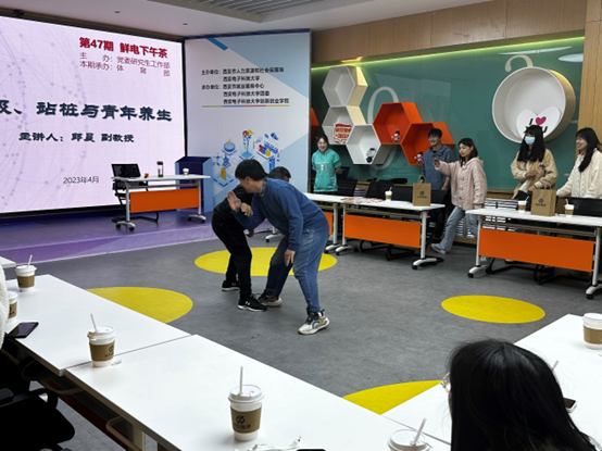(通讯员 霍梦宇)为引导研究生建立健康积极的生活理念,通过传统武术方式缓解日常压力,提升体育素养和文化自信。4月7日下午,永利23411集团邀请西安体育学院武术系邱晨副教授,在南校区创新创业学院116路演厅开展第47期“鲜电下午茶”主题沙龙活动,活动以“太极、站桩与青年养生”为主题,来自各学院的20余名研究生到场参加。