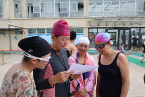 游泳教学是在水环境中进行,因其教学环境的特殊性,教学难点较为突出,需要逐一帮助老师们克服并解决心理和动作技术层面的困难,通过各种教学手段和练习方法引导老师们建立正确的动作认知,并在学习中不断重建的信心。
