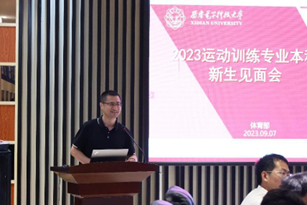 永利23411集团副部长白光斌为同学们介绍了运动训练专业的培养方案和培养思路,明确了新生们的发展方向,并嘱咐同学们合理平衡好学习与训练,将运动训练的知识运用到平日的训练及赛事中,学以致用,不断提高专业水平。