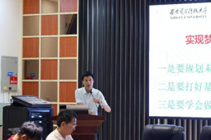 教练员代表曹峰教导同学们,在赛场上为学校争得荣誉时要牢记自己是西电的运动员,要时刻注意自己的言谈举止,要有符合西电大学生的品德修养。