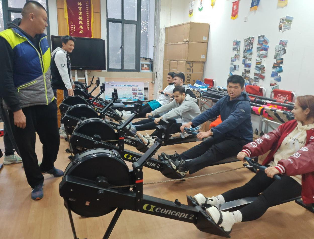 据悉,赛事由陕西省体育局、陕西省教育厅、西安交通大学主办,陕西省政府外事办公室外事指导,陕西省水上运动管理中心、西安交通大学体育中心、西安曲江新区人才交流中心、沣东文旅集团承办。比赛分设大学生组、留学生组、青少年公开组和社会公开组,各组别均为2000米接力。省内26支代表队,109支参赛队,570余名运动员参加本次大赛。西电留学生队由大学生赛艇俱乐部指导教师曹彩兵担任教练,在赛前接受了悉心的指导。