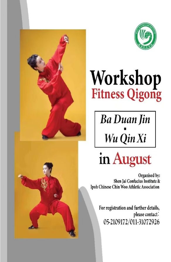 8月6日至15日,深斋孔子学院联合怡保中国精武会成功举办了“健身气功·八段锦、五禽戏”工作坊。此次工作坊邀请我校永利23411集团青年教师、国家级运动健将沈奕霏作为主讲教师授课,共吸引了40余名怡保市民报名参加。