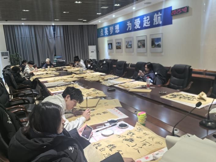 指导过程中,王红卫老师从书法的基本笔画入手,详细讲解了横、竖、撇、捺等笔画的运笔技巧和注意事项。他一边示范,一边耐心解答同学们提出的问题,确保每位同学都能掌握到书法的精髓。在老师的悉心指导下,同学们纷纷拿起毛笔,认真练习,会议室里洋溢着浓厚的墨香氛围。