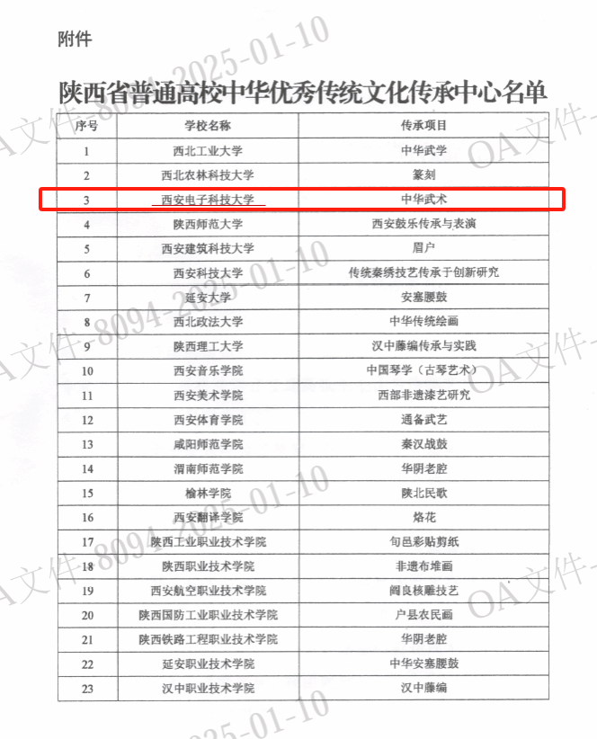 西电以“中华武术”项目获批陕西省普通高校中华优秀传统文化传承基地