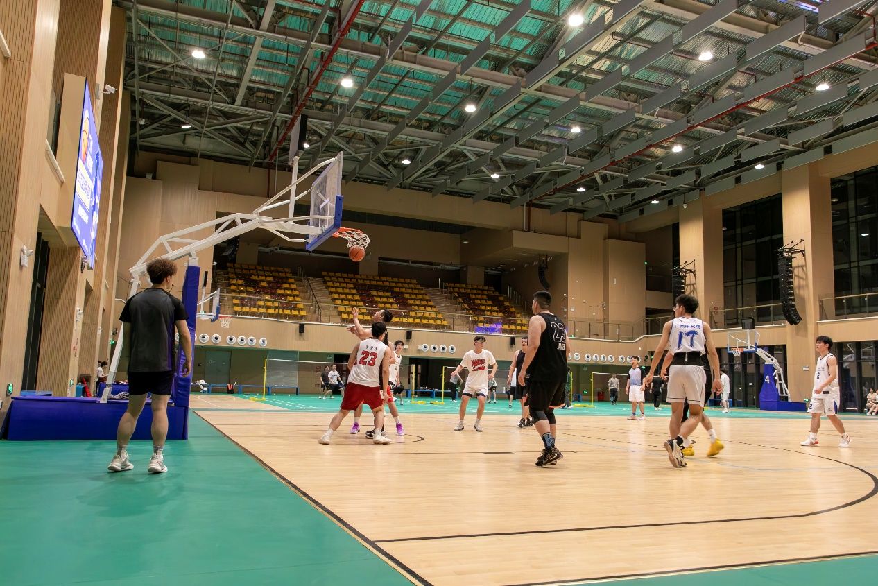 比赛现场气氛热烈,随着裁判的哨声响起,双方球员迅速进入状态,展开激烈角逐。广研院研究生篮球队的队员们朝气蓬勃,凭借出色的团队配合和积极的防守,多次打出精彩反击;西电校友篮球队则凭借丰富的经验和精湛的球技,在进攻端频频得分。双方你来我往,比分交替上升,每一次精彩的进球都引得现场观众欢呼雀跃。