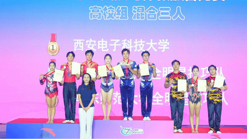 7月的上海赛场,高校技巧精英汇聚。西电健儿无畏挑战,以扎实功底与团队默契,在混合三人操、女子三人操项目中绽放光芒。