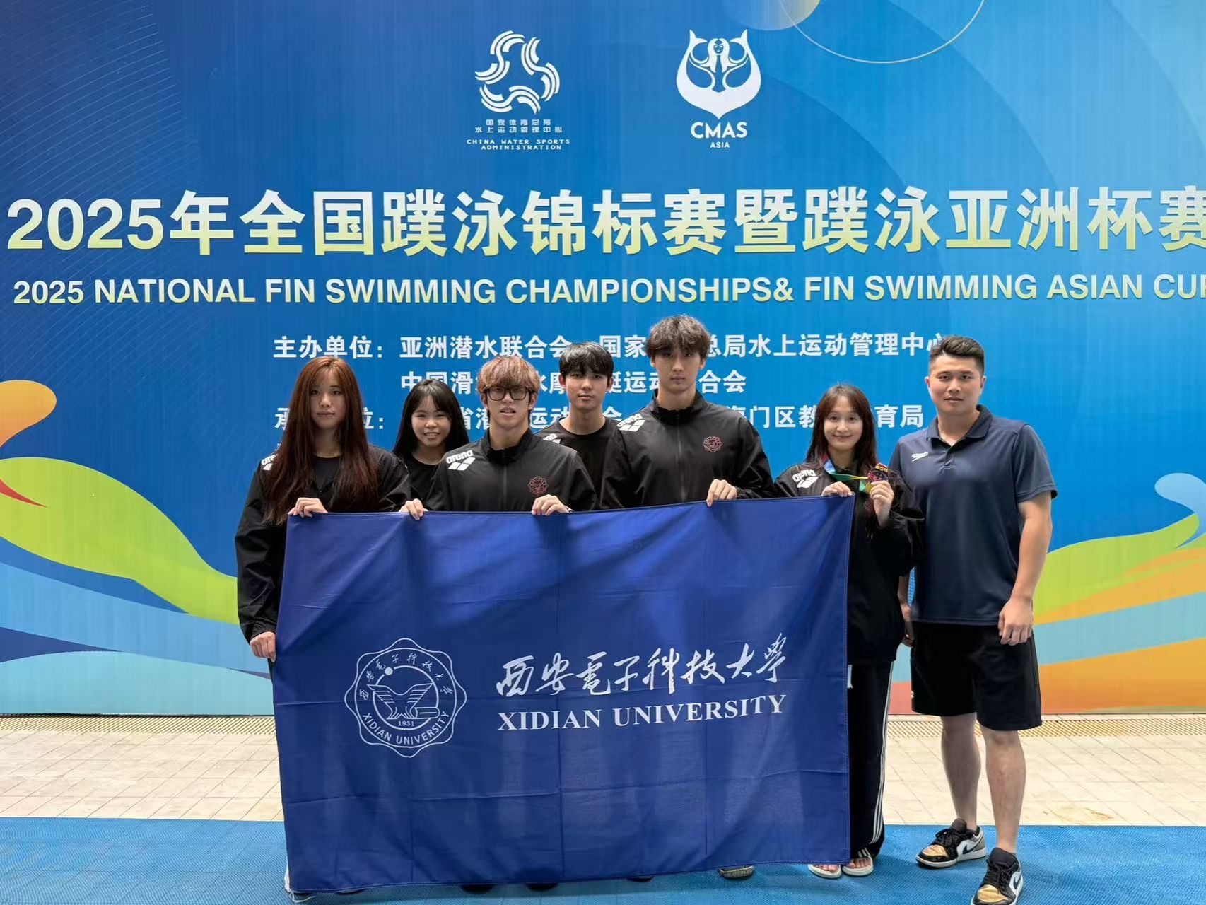 (通讯员:侯鹏)2025年9月17日-21日,由亚洲潜水联合会、国家体育总局水上运动管理中心主办,江苏省潜水运动协会、南通市海门区教育体育局承办的全国蹼泳锦标赛暨蹼泳亚洲杯赛在南通市体育会展中心游泳馆落下帷幕。该赛事作为今年亚洲蹼泳锦标赛的国家队选拔赛,共有来自全国各省市及北京体育大学、中南大学、苏州大学、华南师范大学等院校共27支代表队参加。此役,西电由永利23411集团高鹏飞副部长任领队,侯鹏老师担任主教练,6名队员组成的代表队参赛,荣获5金3银5铜及2项第四名、1项第八名的优异成绩,为学校赢得了荣誉!同时,大三运动训练专业井睿同学通过此次比赛成绩入围国家队集训名单,拟将代表中国队参加2025年亚洲蹼泳锦标赛,实现西电学子在国际体育赛场上的又一突破。
