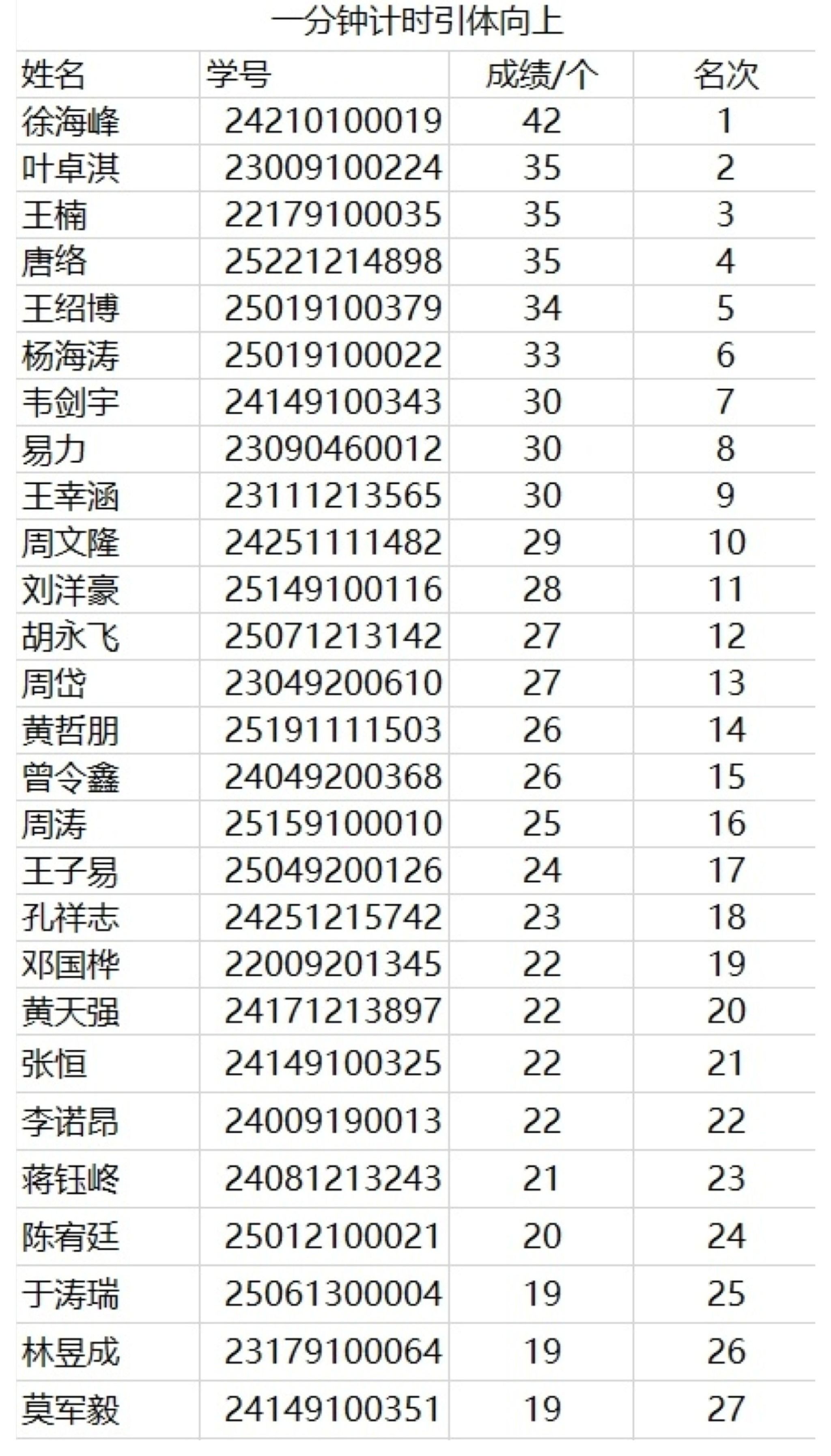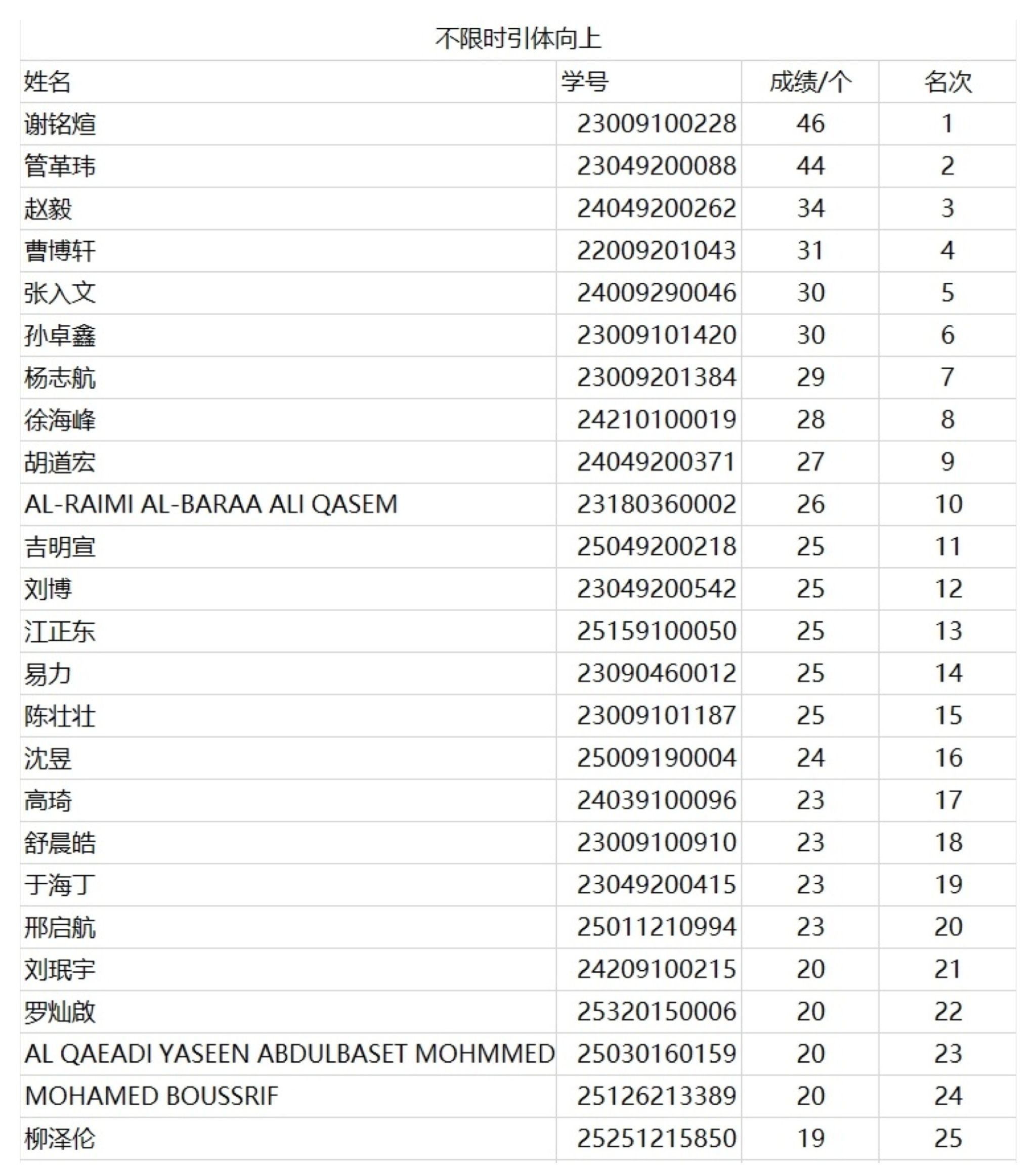 (通讯员 唐青)11月22日,西电南校区北操场单杠锻炼区域活力满满,热闹非凡。第六期大学生引体向上挑战赛顺利收官。作为赛事创办以来参赛人数最多的一届,本次比赛吸引近200名学生踊跃报名,其中不乏来自多个国家的留学生积极参与,同台竞技,展现当代大学生的强健体魄与昂扬斗志。