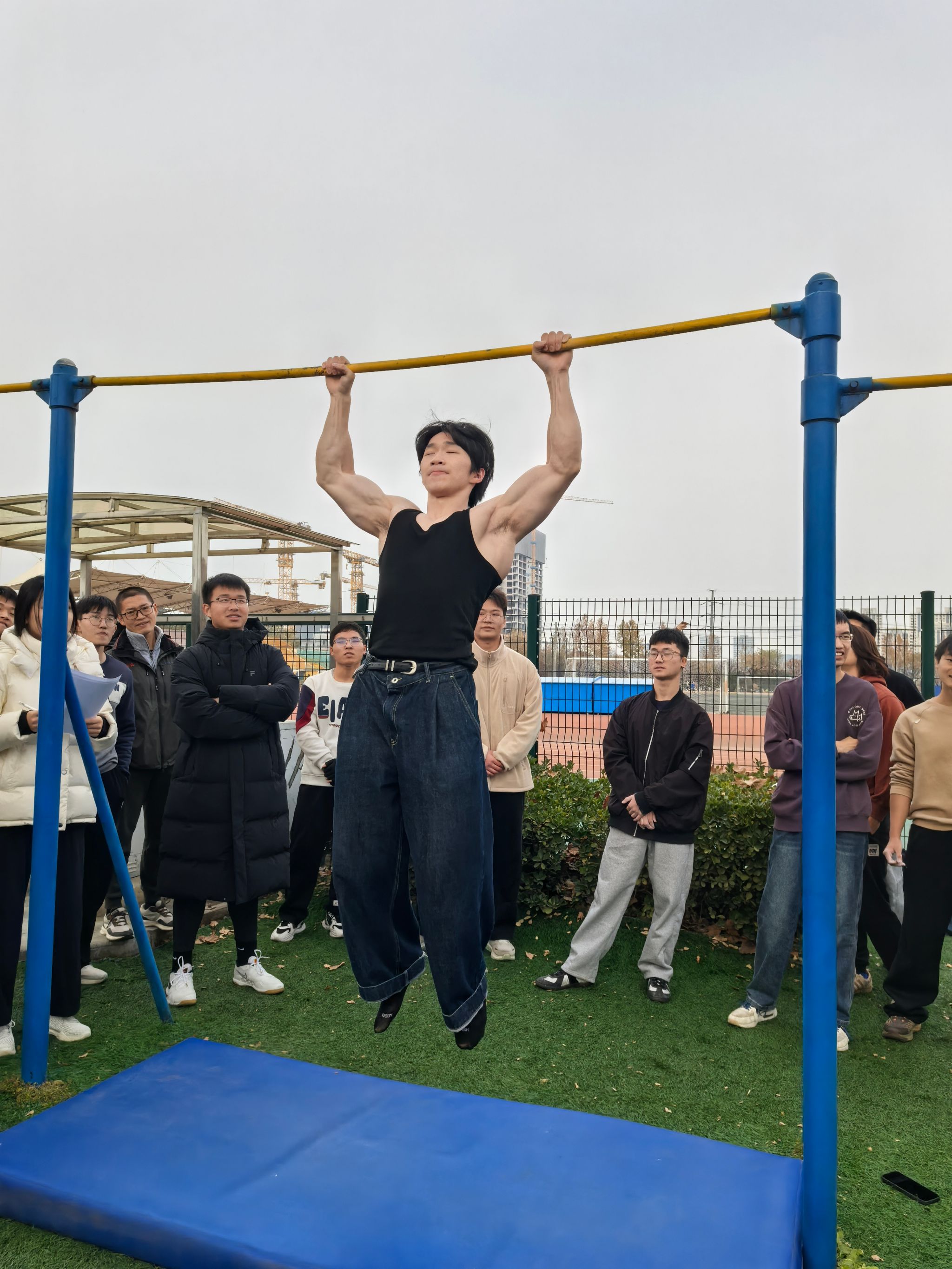 本次赛事以“锤炼体魄,奋进青春”为核心,设置1分钟竞速引体向上和计数引体向上两大项目。比赛现场氛围热烈,参赛选手们精神抖擞、全力以赴。单杠之上,他们凭借扎实的力量基础与坚韧的意志力,不断突破自我极限,每一次标准的引体向上都赢得现场观众的阵阵喝彩。赛道旁,裁判团队严格按照赛事规则精准计时、细致计数,保障了比赛的公平公正;工作人员全程贴心服务,为赛事顺利推进提供了坚实保障。
