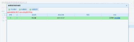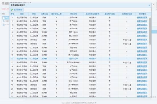 点击某个项目后的“查看报名情况”,就显示这个项目的具体报名的人数。
