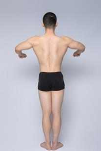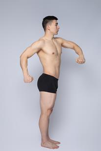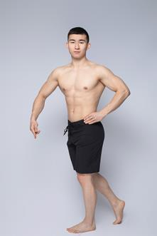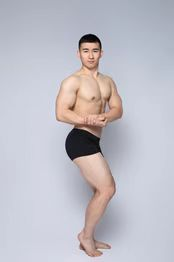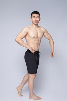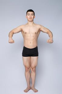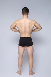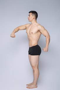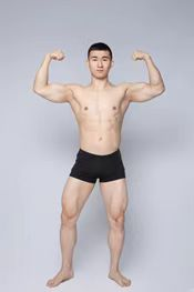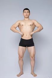 男子健体比赛要求选手拍摄4个造型展示,身体方位分别是正向站立、左侧向站立、背向站立、右侧向站立进行形体展示。