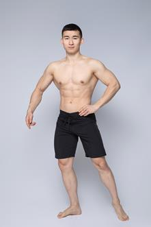 (2)男子健身项目穿黑色紧身健身背心,黑色运动短裤,赤足;