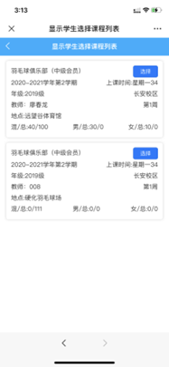 注:选中每条记录前的“选择”汉字,点击即可完成选课。