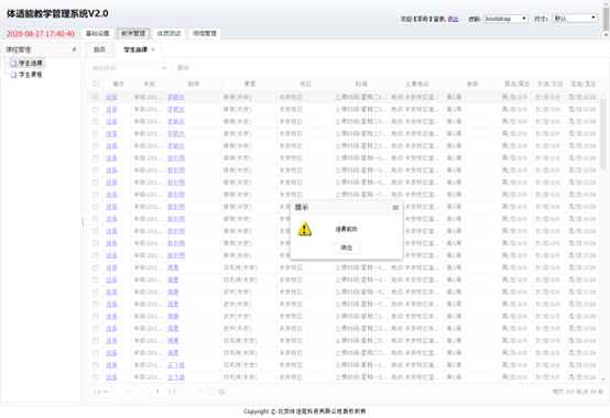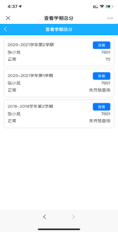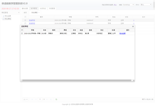 点击“教学管理”---“课程管理”---“学生课程”,显示学生某个学期的总的成绩的记录,并显示对应的总分数。点击“查看课程”链接,可以看到这个学期对应的选课的记录。