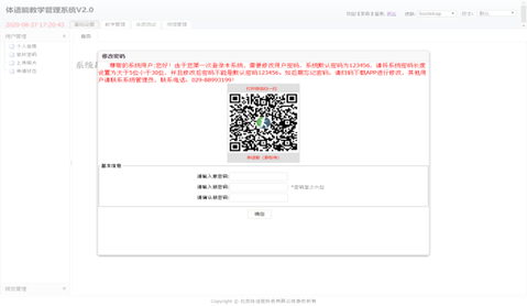 打开西电体育公众号,点击底部“教学服务”,选择“登陆系统”,如果是第一次登陆系统,会出现一个未登陆提示框,点击确定后进入到登陆页面,输入初始的账号和密码登陆,系统会提示你修改密码,修改密码后再次登陆,会和微信进行绑定,后期再次点击“登陆系统”时,就直接进入到系统的首页面。