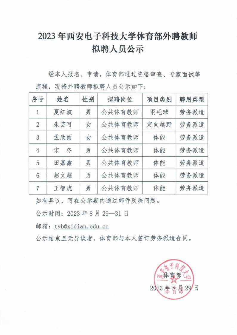 2023年永利23411集团外聘教师拟聘人员公示