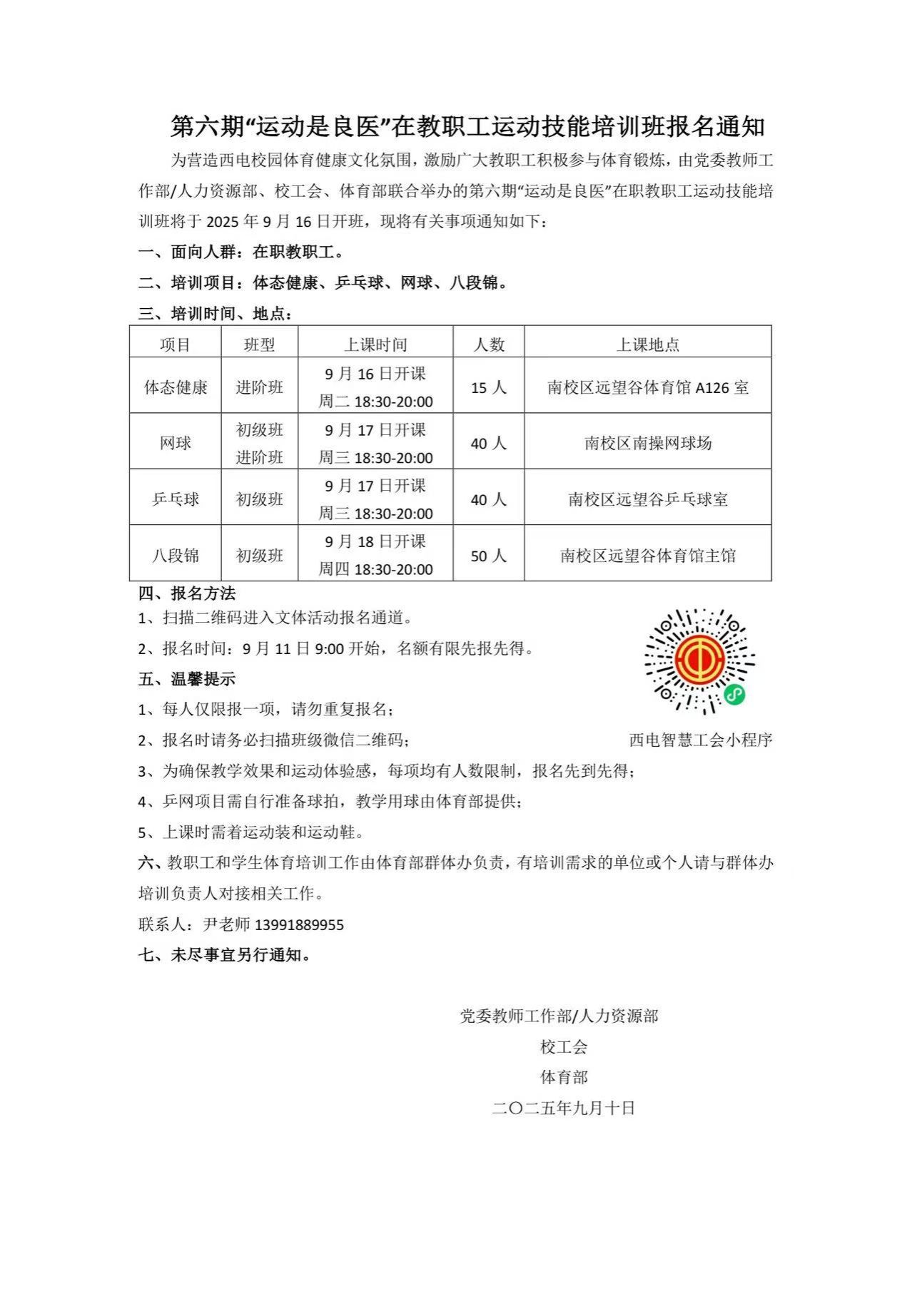 第六期“运动是良医”在教职工运动技能培训班报名通知