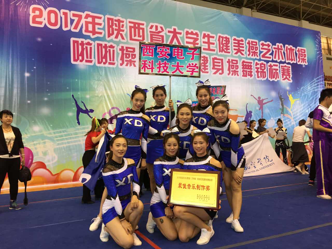 2017年6月5日至7日,由陕西省教育厅主办,陕西省学生体协、西安邮电大学承办的陕西省大学生健美操艺术体操啦啦操及校园健身操舞锦标赛在西安邮电大学隆重举办。此次大学生锦标赛共有30支陕西省高校运动队参加,竞争十分激烈。我校派出16名运动员参赛,在教练员郭青青的带领下荣获了自编花球舞蹈啦啦操第三名和有氧舞蹈自编套路第三名的成绩。在赛场上,不仅展现了运动员超高的技能水平和坚忍不拔的竞技精神,同时也带动了现场的气氛,感染了在场的观众,还获得了“最佳音乐制作奖”的称号,得到了在场裁判员的认可。