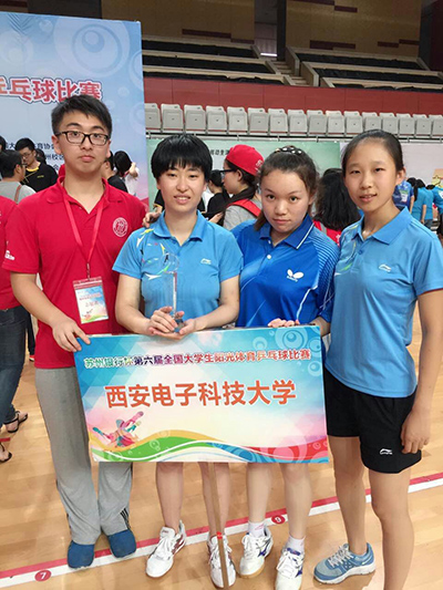 2015年5月30日至31日,第六届全国大学生阳光体育乒乓球比赛在江苏省苏州市独墅湖体育馆举行。我校首次参加全国大学生阳光体育乒乓球比赛,由严鸣副教授任主教练,我校代表队一路战胜浙江大学、南京大学、上海交通大学等强队,闯入决赛,斩获佳绩,取得团体冠军、全国一等奖的优异成绩,邵帅、杨阳两位同学还获得了“全胜运动员”称号。