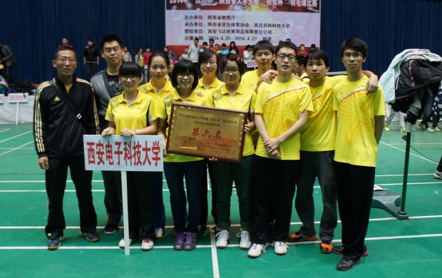 陕西省2014年“薰风杯”大学生暨“校长杯”羽毛球赛于2014年4月26、27日在西北农林科技大学(杨凌)举行。西电代表队10名队员参赛,参加了学生甲组混合团体的比赛,经过两天的努力拼搏,最终夺得第六名。副校长李建东参加了“校长杯”羽毛球赛,夺得小组第一名,成功晋级16强。梁舒幸、薛新同学荣获“优秀运动员”称号。