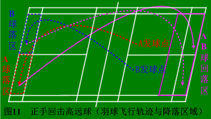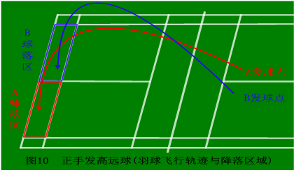 测试方法:受测者站在前发球线后1米处,左右半区各发5个高远球。