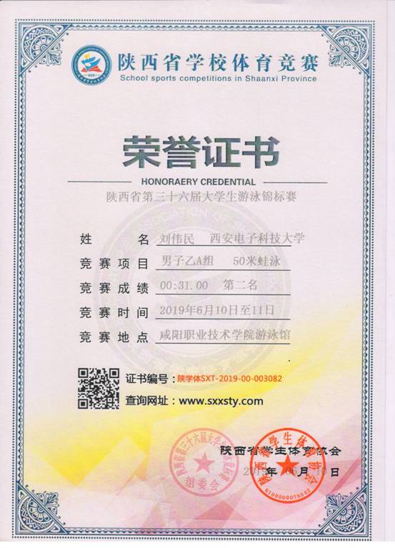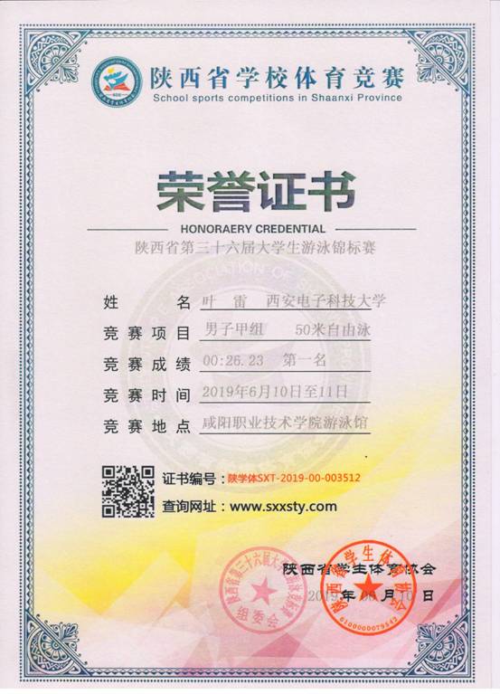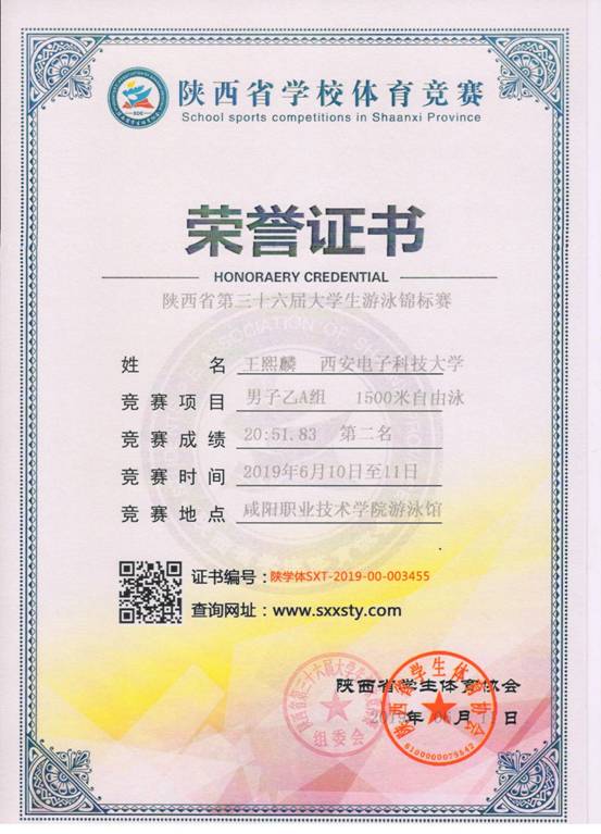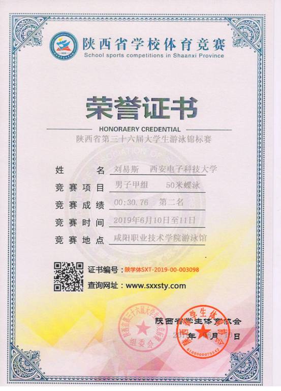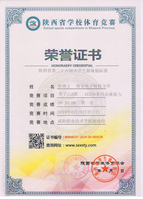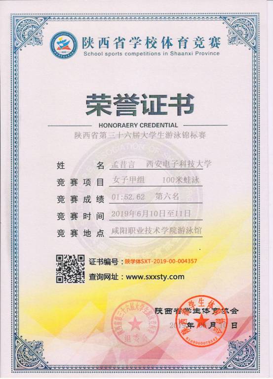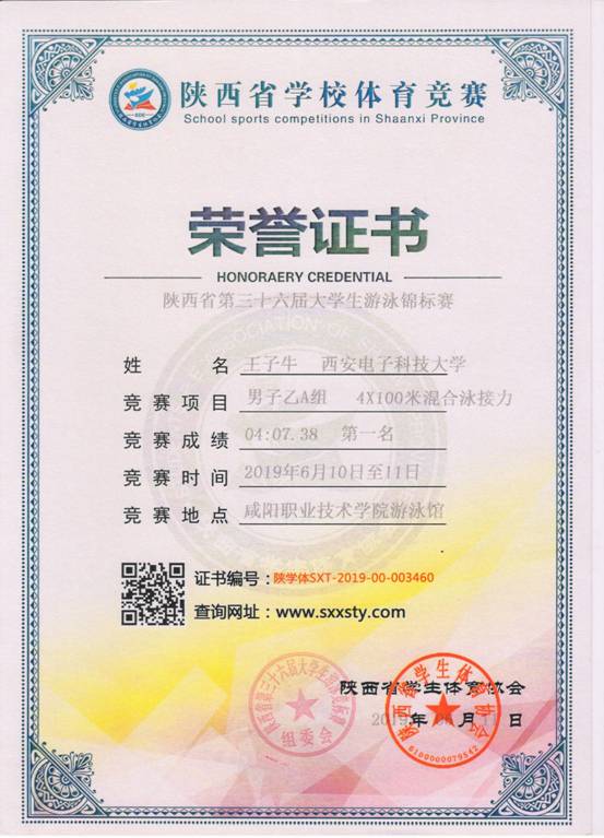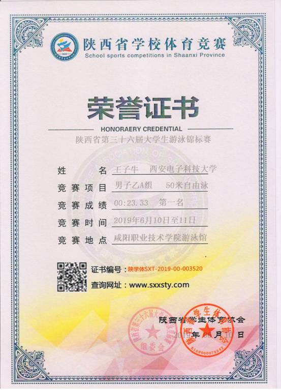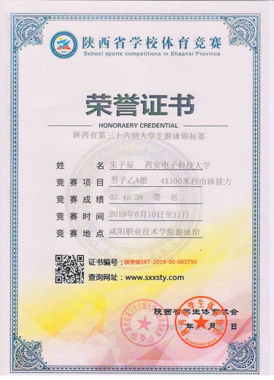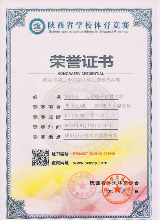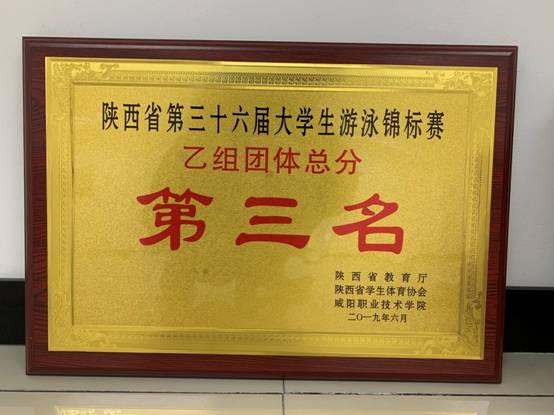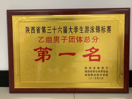 6月11-12日,我校高水平游泳队在第三十六届陕西省大学生游泳锦标赛中获得20金8银1铜,乙组男子团体总分第一名。