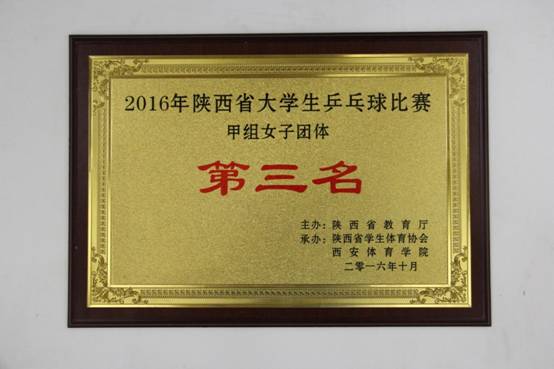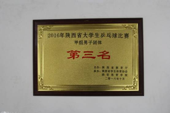 陕西省大学生乒乓球比赛于2016年10月27--30日在西安体育学院体育馆举行,西电乒乓球队拿下男子单打冠军、团体第三名、女子团体第三名和女子双打第五名的优异成绩。