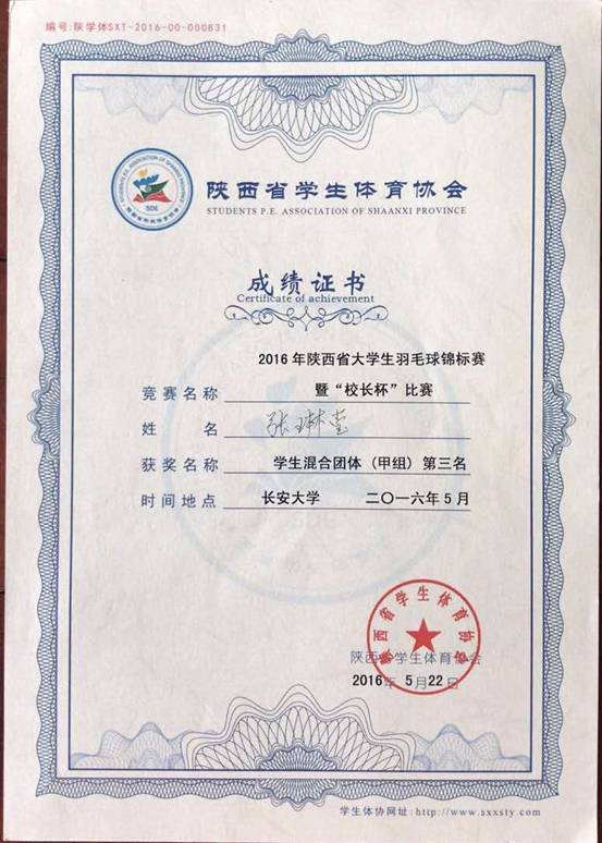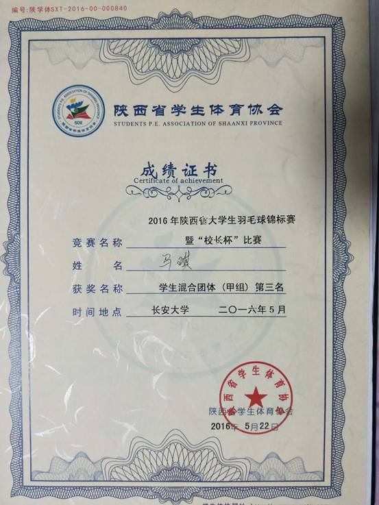 2016陕西省大学生羽毛球锦标赛暨“校长杯”羽毛球赛于5月20日-22日在长安大学本部体育馆举行,永利yl23411集团代表队获得大学生甲组(普通大学生组)混合团体季军;副校长李建东与离退休处副处长王渝秦双打组合参加“校长杯”羽毛球赛比赛,夺得小组第一名,晋级12强。