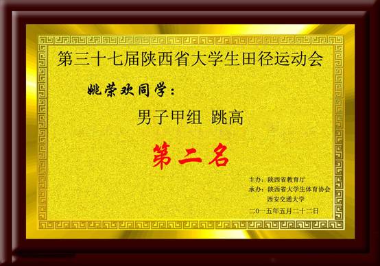 第37届陕西省大学生田径运动会姚荣欢男甲跳高第二名