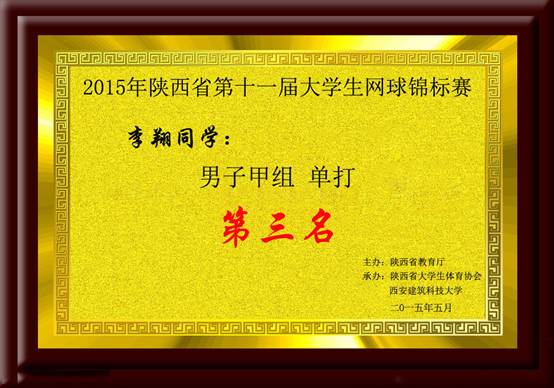第37届陕西省大学生田径运动会李翔男甲单打第三名
