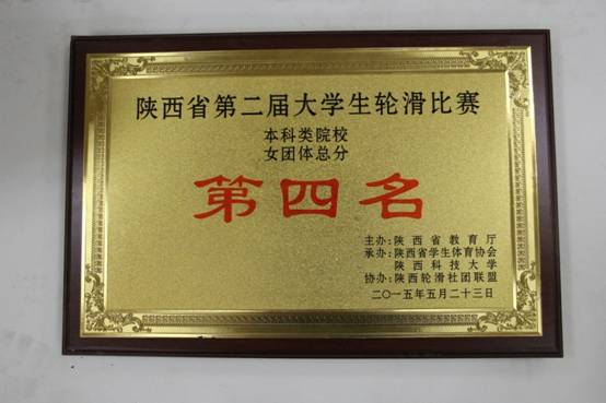 2015年陕西省第二届大学生轮滑比赛于5月23日至24日在陕西科技大学举行,第一名2项。