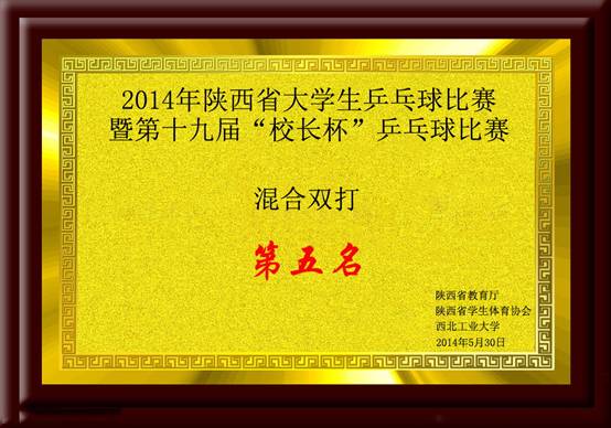 2014年陕西省大学生乒乓球比赛暨第十九届校长杯乒乓球比赛混合双打第五名