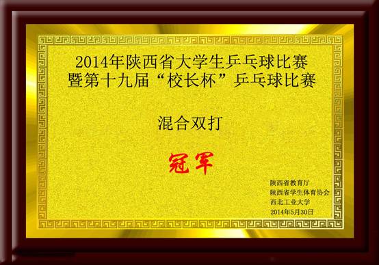2014年陕西省大学生乒乓球比赛暨第十九届校长杯乒乓球比赛混合双打冠军